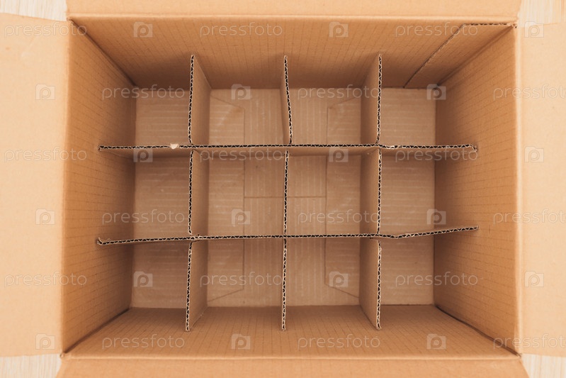 Хорошо структурированная картонная коробка, оснащенная разделителями, предназначенными для эффективного хранения предметов