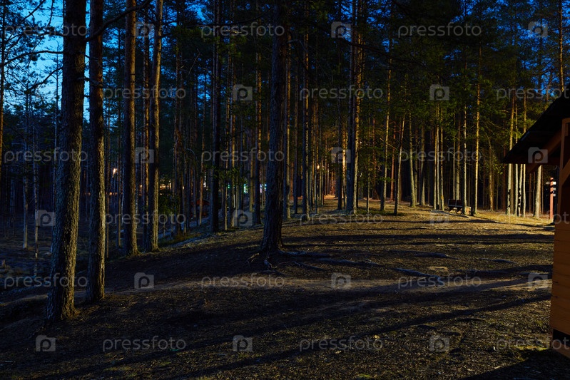 Почувствуйте спокойную и умиротворяющую атмосферу сумерек среди пышного соснового леса