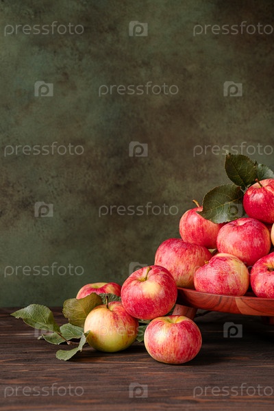 Фон с собранными красными яблоками. Крупный план кучи красных яблок