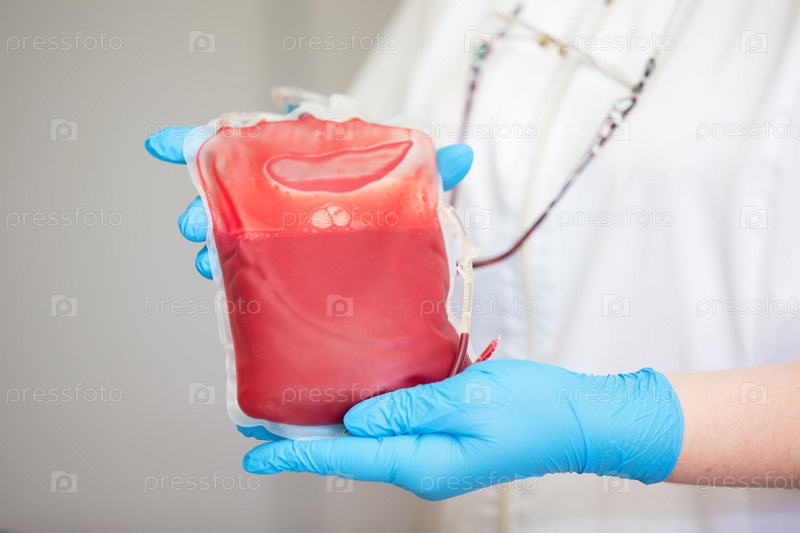 Плазма крови в центре трансфузиологии и донорства. Закройте мешок с кровью в лаборатории в руках