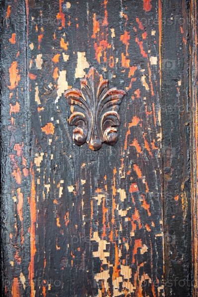 Текстура старого дерева с облупившейся черной краской и винтажным декором