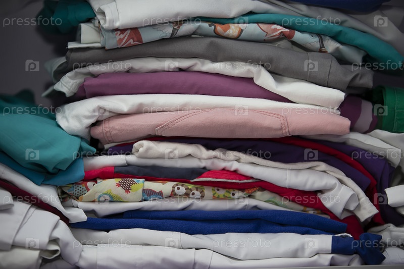 Стопка чистой, выглаженной медицинским способом одежды
