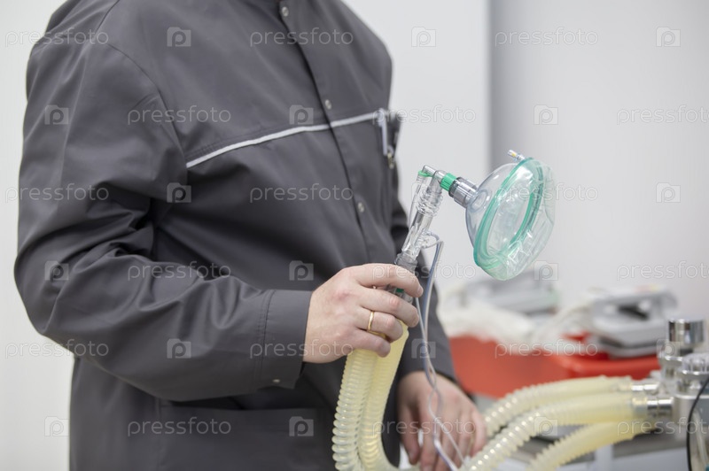 Врач держит кислородную маску