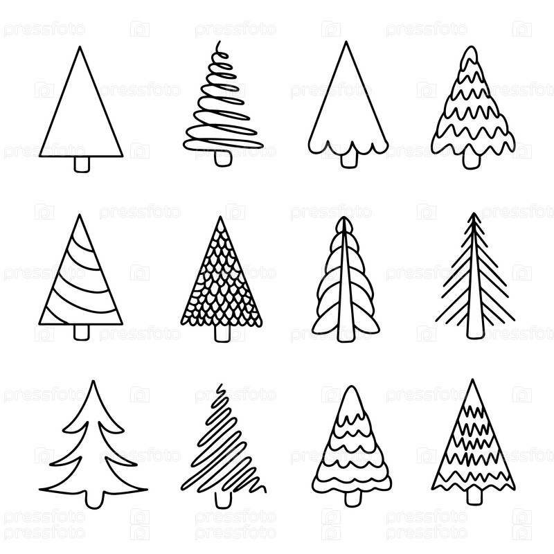 Набор рисованных абстрактных линейных рождественских елок. Елки в стиле каракули. Простая векторная иллюстрация. Идеально подходит для праздничных поздравительных открыток. Векторная иллюстрация