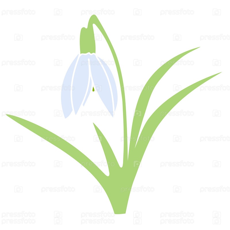 Милый подснежник с листьями. Первый весенний цветок. Красочная ботаническая иллюстрация. Модная современная векторная иллюстрация на белом фоне