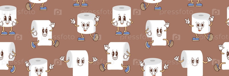 Бесшовный узор из рулонов туалетной бумаги в разных положениях. Иллюстрация коричневых какашек. Элемент туалета и ванной комнаты. Гигиена и санитария. Фон цвета 2025 года Мокко Мусс