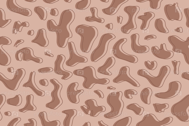 Бесшовный узор органических жидких пятен в цвете 2025 мокко мусс. Абстрактные пятна на бежевом фоне. В плоском и линейном стиле. Вектор