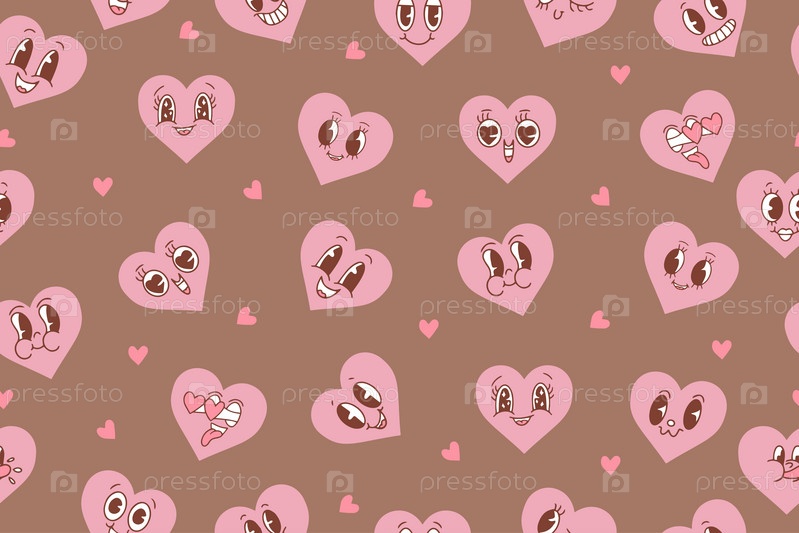 Каваи сердца, набор милых икон эмодзи, стикеры. Нарисованные эмоциональные персонажи. Милые любовные персонажи с разными лицами, забавные положительные эмоции. Векторная иллюстрация на фоне мокко-муссы