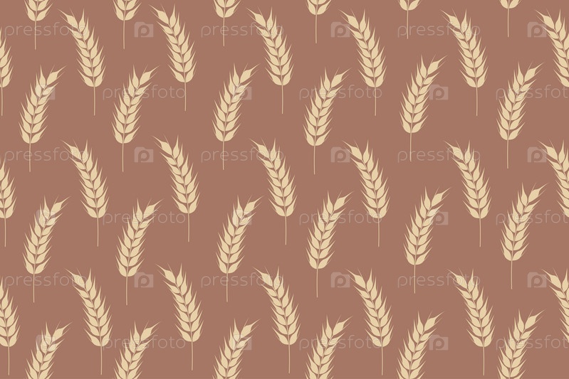 Бесшовный узор из золотых спелых колосьев пшеницы. Сельскохозяйственный символ, производство муки. Оберточная бумага для хлеба. Фон мокко-мусс