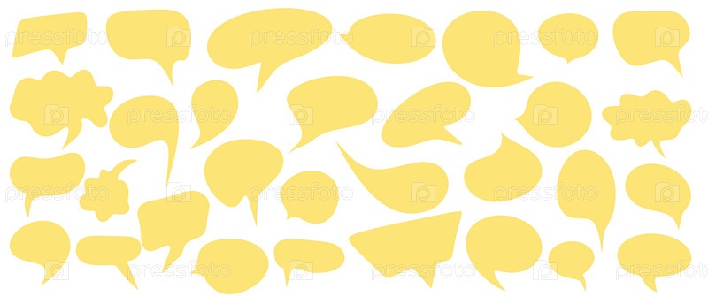 Набор плоских речевых пузырей, текстовых полей и чатов для разговоров в стиле комиксов. Комментарии к сообщениям, окно чата. Векторные иконки на белом фоне