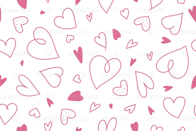 Бесшовный узор из рисованных иконок сердца. Фон для дизайна поздравительных открыток, принтов, упаковки