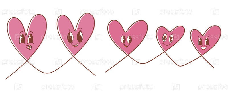 Непрерывный рисунок линии двух и трех сердец, минималистичная концепция любви и семьи. Милые кавайные сердца. Векторная иллюстрация для вашего дизайна