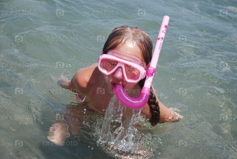 Девочка купается в море