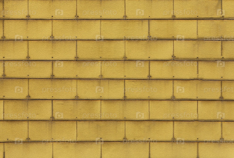 Прямоугольные желтые настенные плитки создают повторяющийся узор, скрепленный заклепками, обеспечивая фактурный фон
