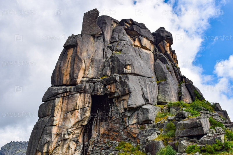 Горы, туман, горный пейзаж, Ергаки, лето, мегалиты, горная тайга