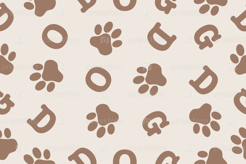 Бесшовный узор из отпечатков лап животных. Фон слова собака и отпечатка лапы. Бесшовный узор в цвете мокко мусс. Вектор. Вектор