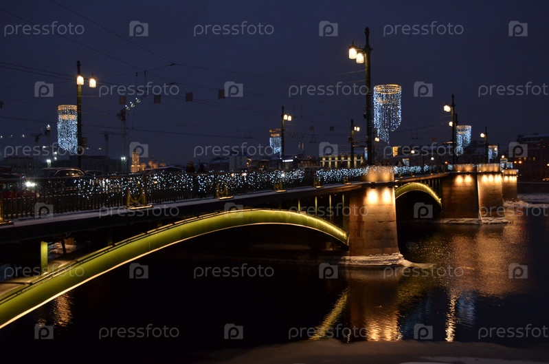 Новогоднее украшение Биржевого моста в Санкт-Петербурге