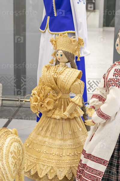 Традиционные белорусские вышитые льняные платки, полотенца и берестяные плетеные сувениры и куклы. Ремесло