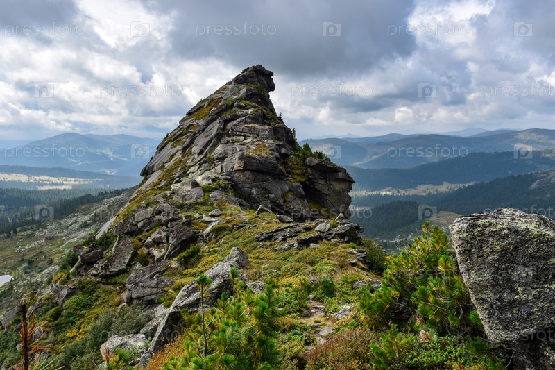 Горы, туман, горный пейзаж, Ергаки, лето, мегалиты, горная тайга