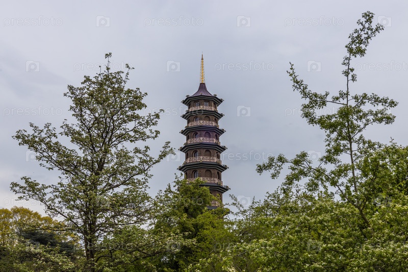 Историческая Великая пагода, окруженная зеленью в ботаническом саду Ричмонда
