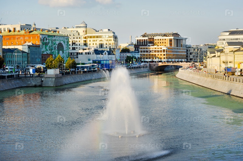 Вид с Лужкова моста в центре Москвы