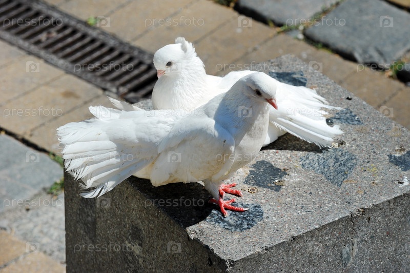 Пара белых голубей сидит вместе