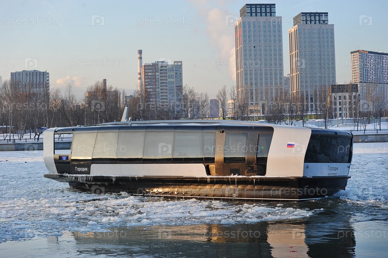 Электрический речной трамвай плывет по Москве-реке