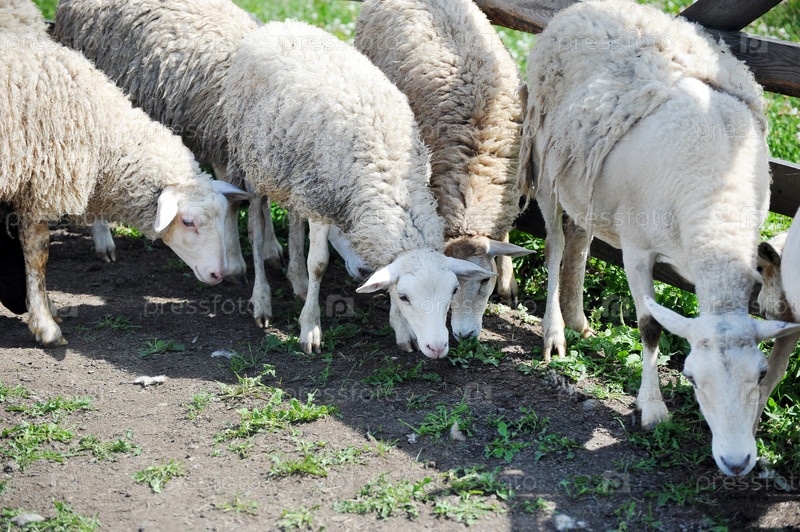Выпас овец в загоне для животных