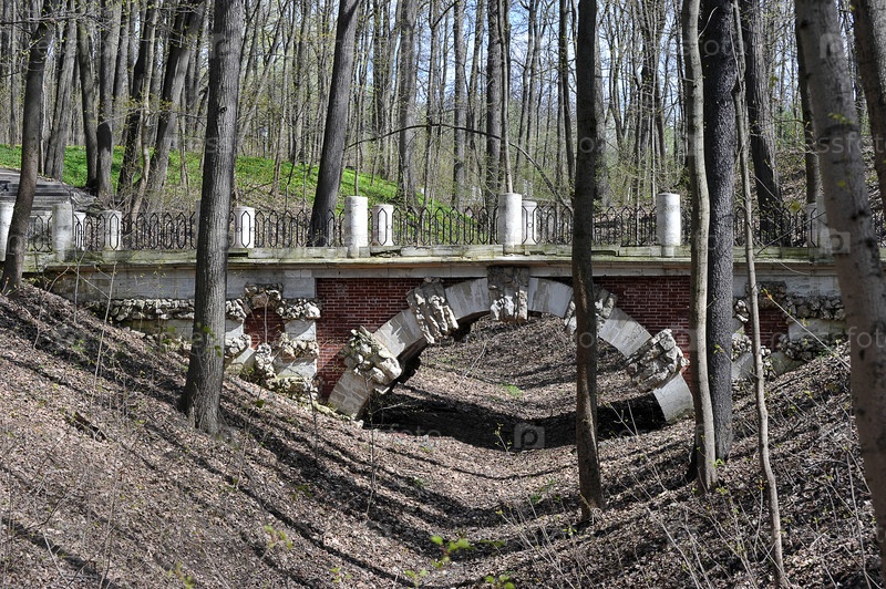 Архитектурное сооружение - каменный мост в парке Царицыно в Москве