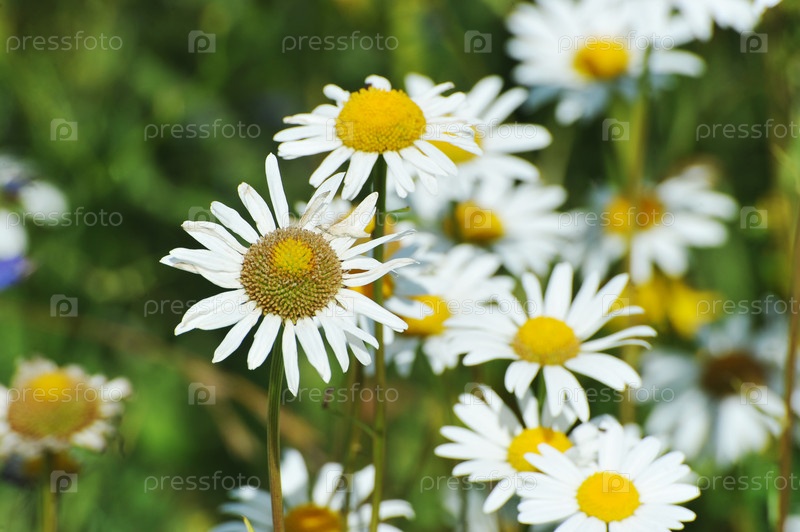 Цветущие ромашки в конце лета - летний луг и травы