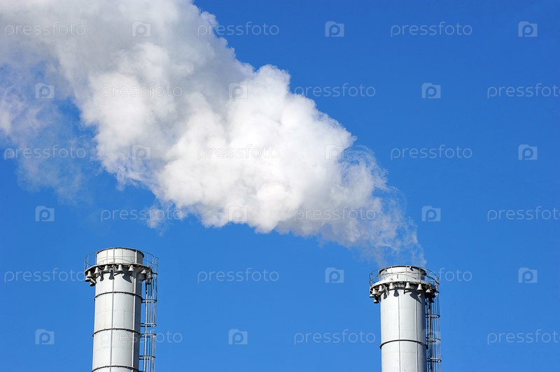 Труба котельной на фоне голубого неба