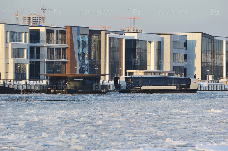 Электрический речной трамвай плывет по Москве-реке