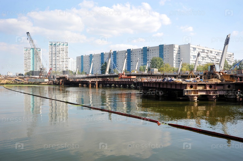 Строительство пешеходного вантового моста в Нагатинском затоне в Москве