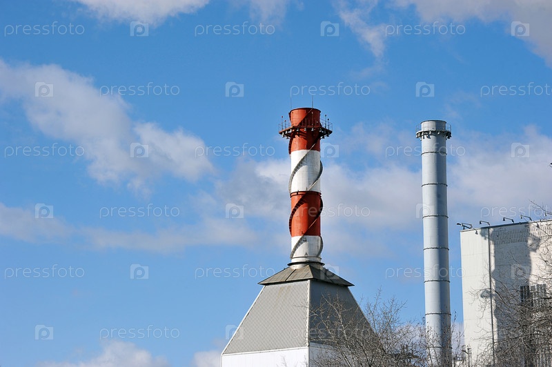 Труба котельной на фоне голубого неба
