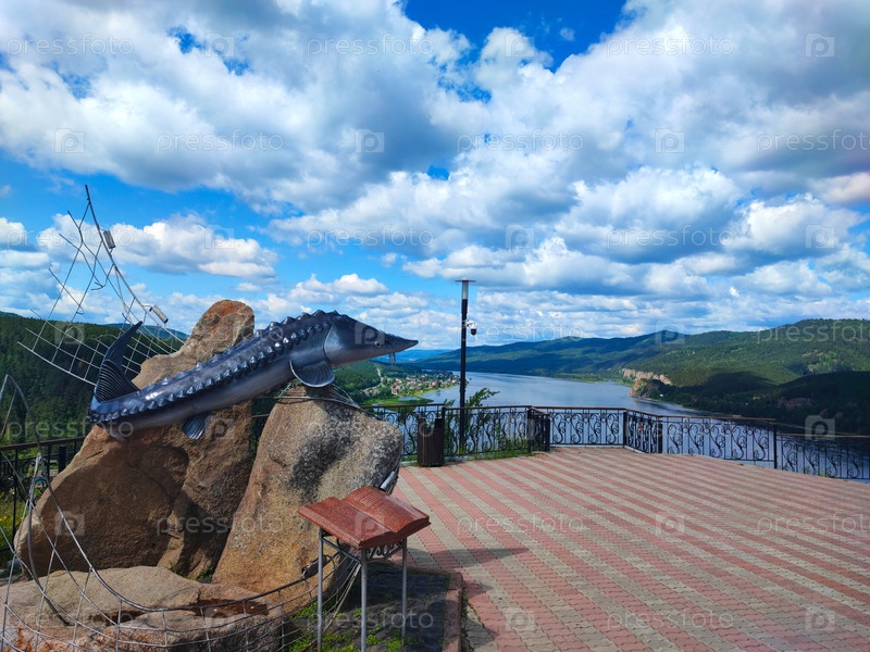 Наблюдательная площадка Царь-рыба, между Красноярским и Дивногорским, река Енисей. (2023 г.) Огромный осетр по мотивам повести 'Царь-рыба' Виктора Астафьева