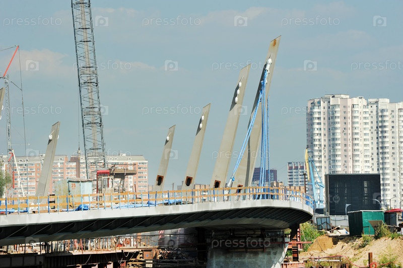 Строительство пешеходного вантового моста в Нагатинском затоне в Москве