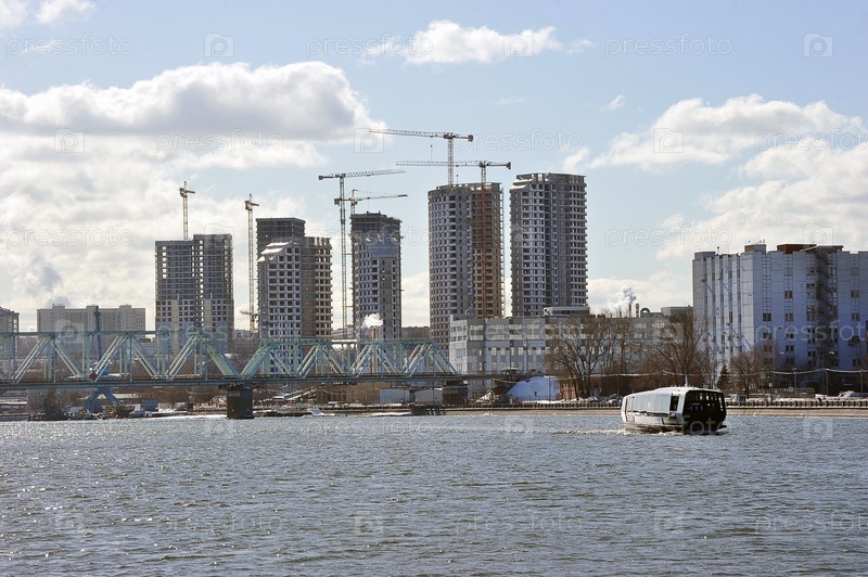 Вид на строящиеся дома на набережной Москвы-реки в Москве