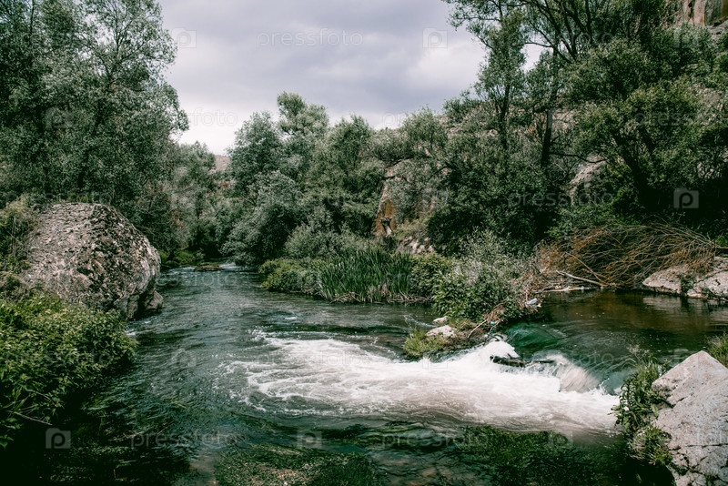 Каппадокия Турция пейзаж река среди камней гора, поток водохранилище