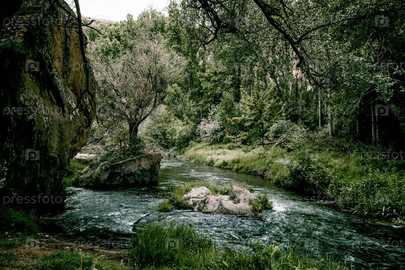 Каппадокия Турция пейзаж река среди камней гора, поток водохранилище