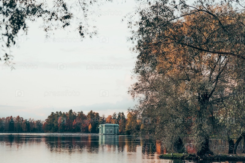 Зеленый городской парк с пешеходными дорожками, тропа рядом с зеленой изгородью, пасмурный день, Гатчинский сад, Санкт-Петербург, Россия