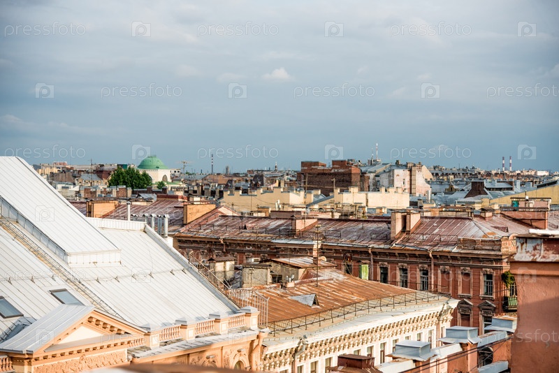 Санкт-Петербург, Россия, июль 2019, Крыши старых зданий в центре города, вид сверху