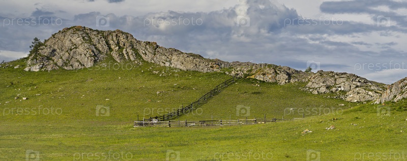 Россия. Юг Западной Сибири, Горный Алтай. Живописные священные горы, покрытые сплошным зеленым ковром со множеством альпийских цветов, близ села Усть-Кан