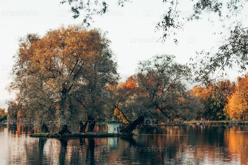 Зеленый городской парк с пешеходными дорожками, тропа рядом с зеленой изгородью, пасмурный день, Гатчинский сад, Санкт-Петербург, Россия