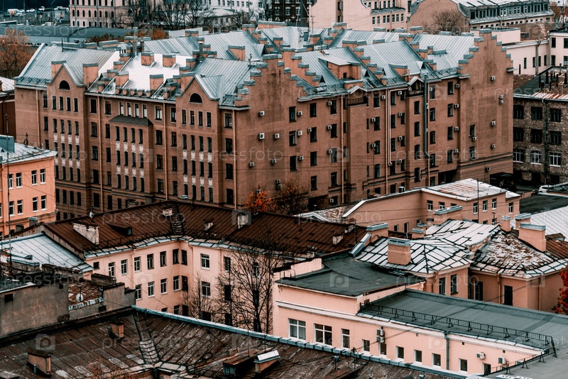 Санкт-Петербург, Россия, октябрь 2021 г., Крыши старых зданий в центре города, вид сверху