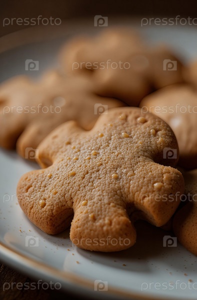 Пряничное печенье, лежащее на деревянном столе, рождественская выпечка