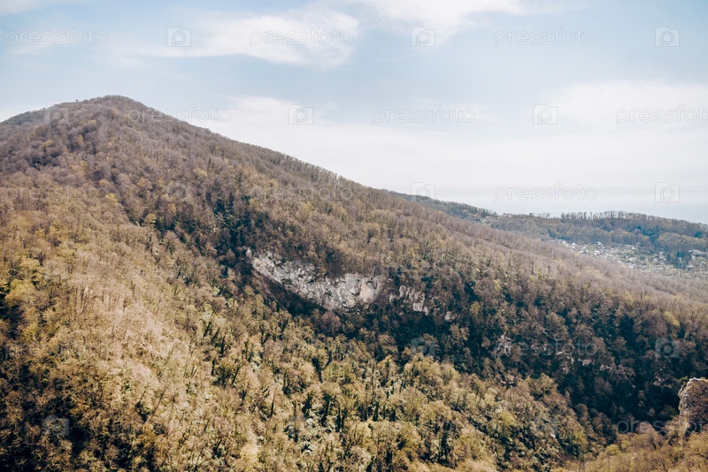 Пейзаж гор Сочи, горный хребет в дымке лета