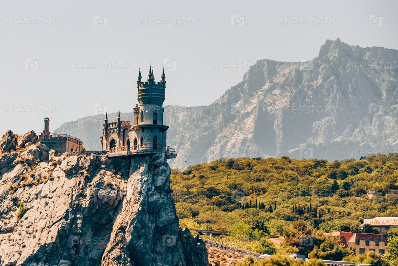 Ялта, Крым, 6 августа 2020 г., Дворец «Ласточкино гнездо» на скале с видом на Черное море