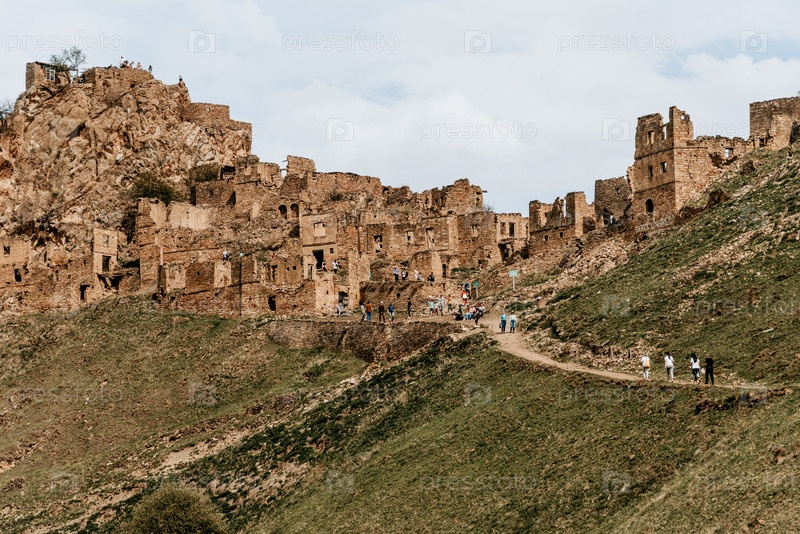 Дагестан, Россия, аул Гамсутль крепость в старом городе, старая каменная достопримечательность, фортификационное сооружение ландшафт