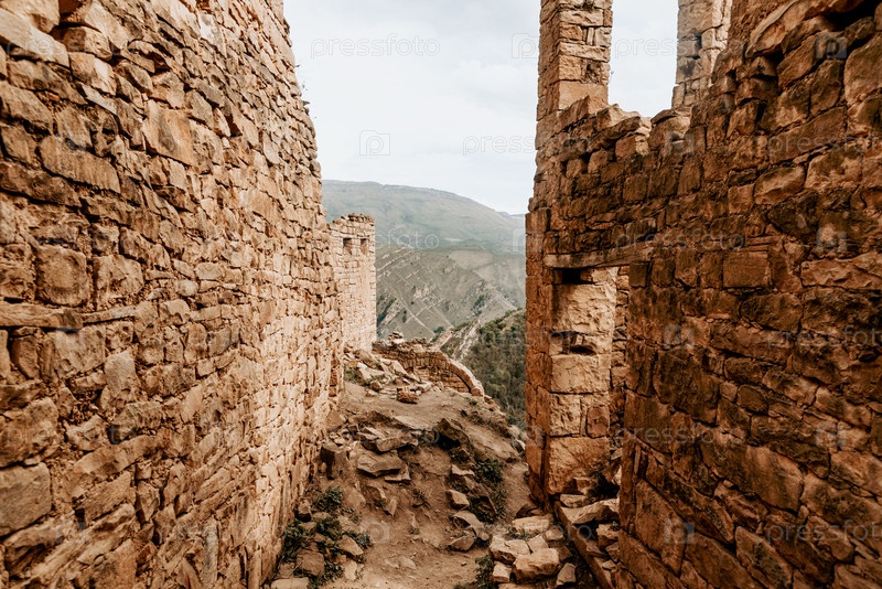 Дагестан, Россия, аул Гамсутль крепость в старом городе, старая каменная достопримечательность, фортификационное сооружение ландшафт