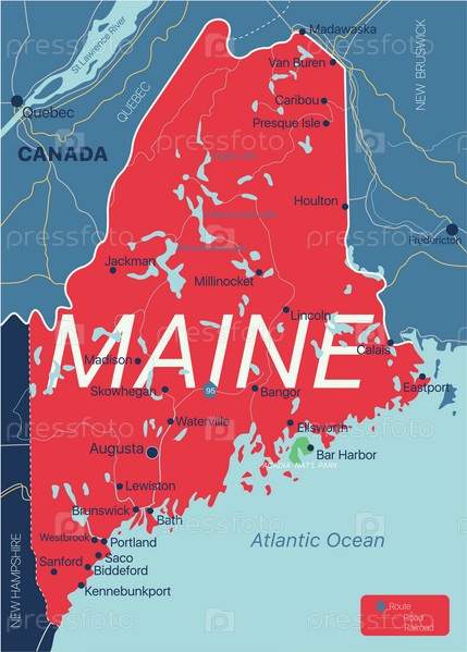 Подробная редактируемая карта штата Мэн